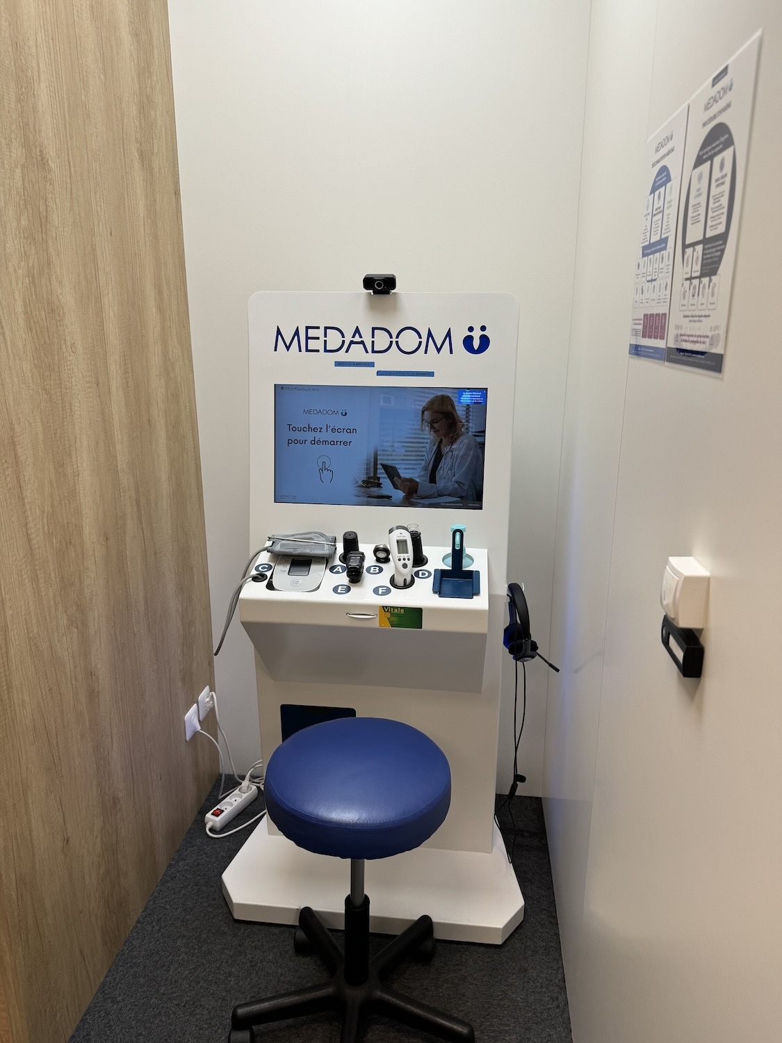 À l’aide d’une borne équipée d’objets connectés, vous pouvez maintenant consulter un médecin en ligne et obtenir une ordonnance, le tout, pris en charge par l’assurance maladie.